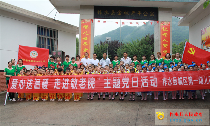 为宣传和弘扬中华民族尊老、敬老、爱老的传统美德,7月1日柞水县城区第一幼儿园党支部开展了“爱心送温暖,走进敬老院”主题党日活动。党支部组织党员、教师21人,幼儿70人走进“金秋敬老院”,用实际行动为老人们送去关爱和温暖。